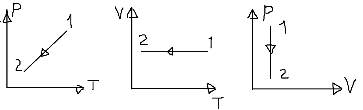 давление данной массы газа изохорно уменьшили в 3 раза. Начальная температура газа 300k.а)чему равна конечная температура газа? б) изобразите графики зависимости p(T), V(T) и p(V) для данного процесса.