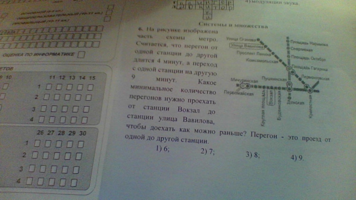 2 картинка: Если ехать с 2мя пересадки через Пушкинскую и площадь гагарина получится 6 перегонов и 2 пересадки. Это 6*4+2*9=42 минуты (6 перегонов). А если ехать с одной через Крестьянскую (вроде, не оч видно на картинке), то получится 8 перегонов и 1 пересадка. Итого 8*4+9=41 минута (8 перегонов)