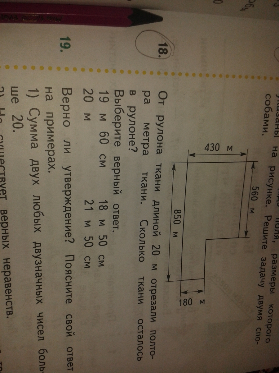 Теперь переведём 1850 см обратно в метры, это будет 18 м 50 см.
