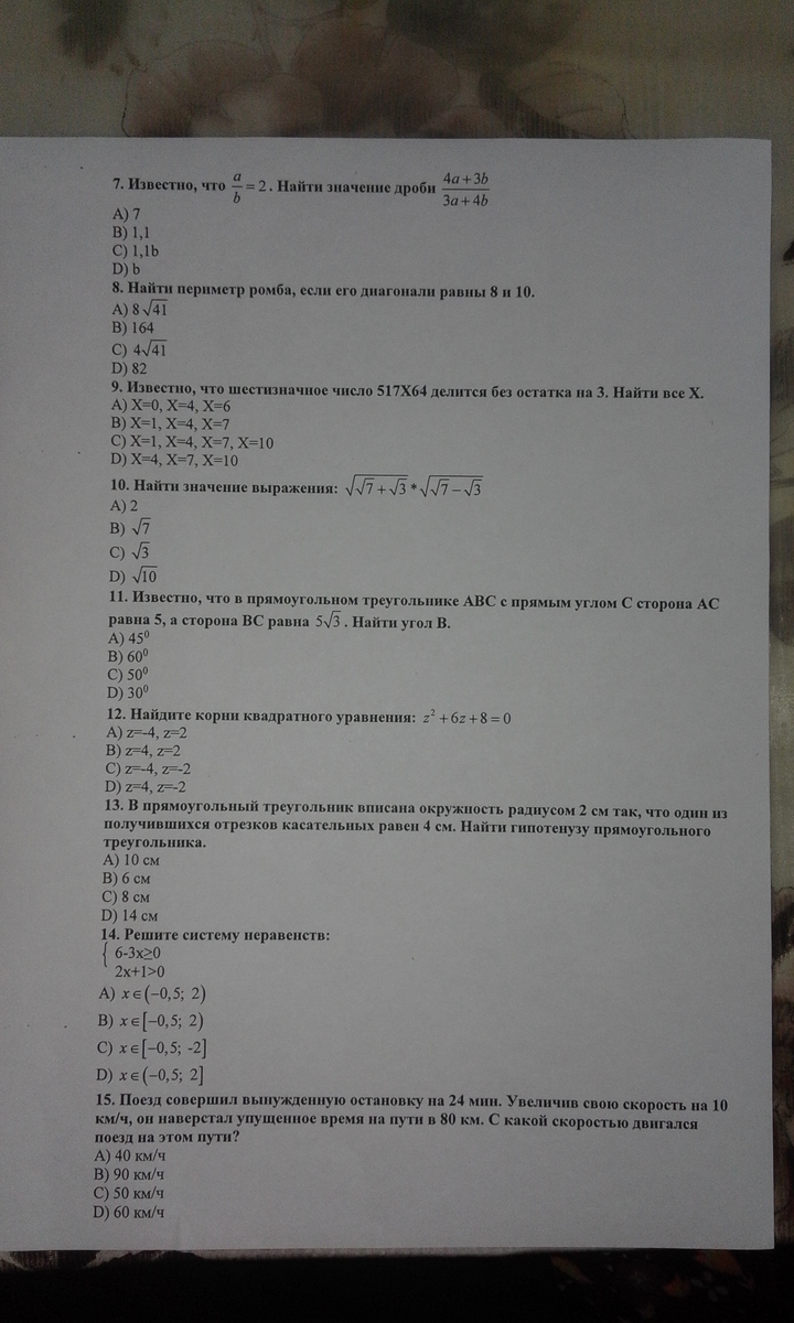 8)Так как по свойстве ромба диагонали в точке пересечения делятся пополам тогда