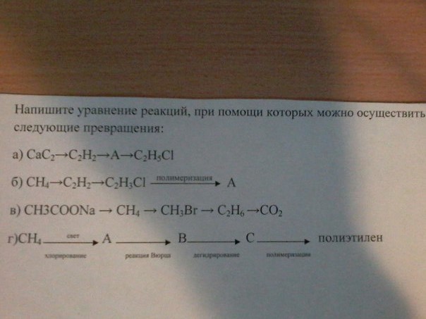 Химия, 10 класс. Напишите уравнение реакции, при помощи которых можно осуществить следующие превращения...