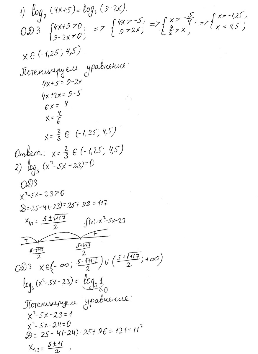 1)log(осн.)2 (4x+5)=log(осн)2(9-2х)