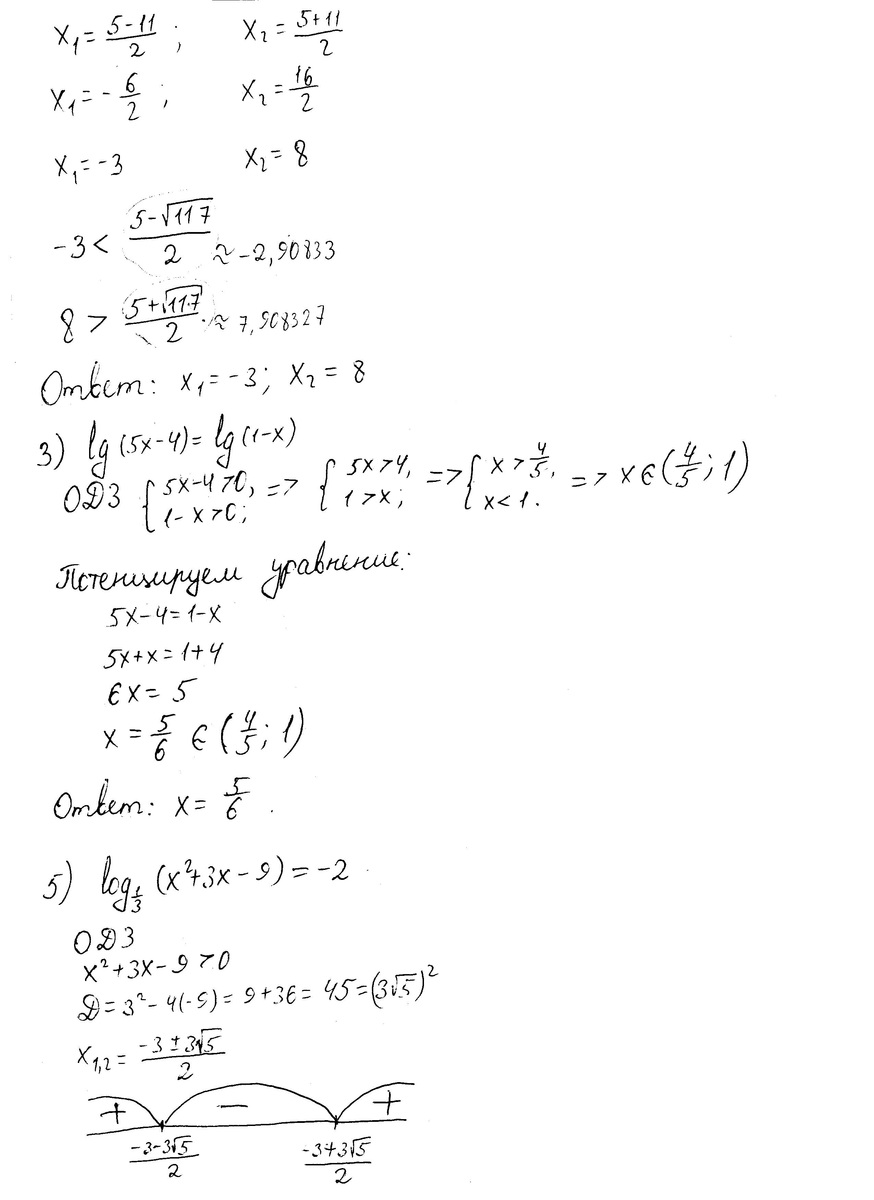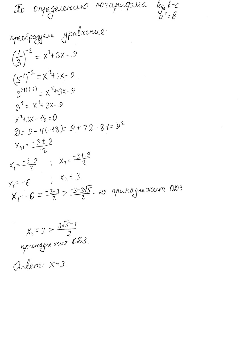 5)lg(осн)1/3(x^2+3x-9)=-2
