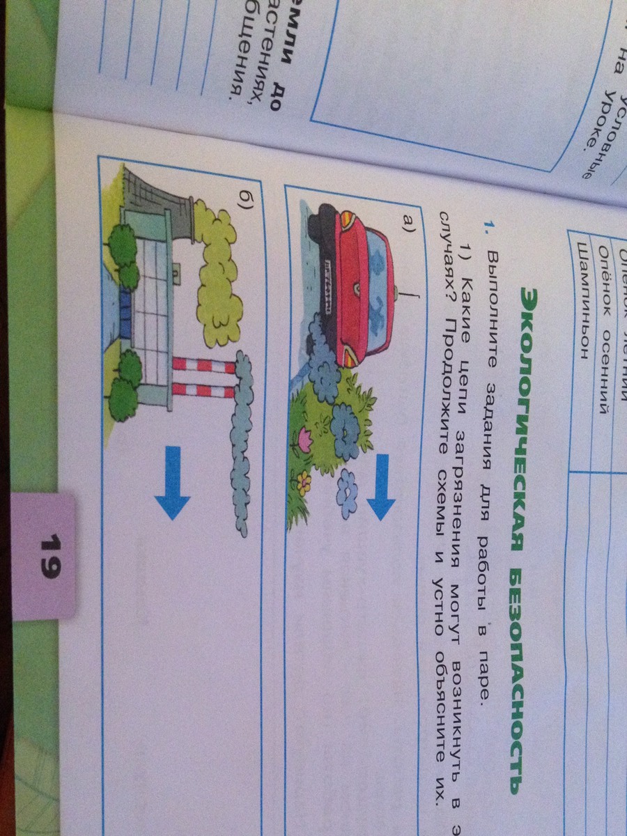 пыли и своих газов. На второй картинки нарисован завод он выпускает в воздух плохие газы и как-то по другому называется слово (спроси у родителей). Ну я так понимаю что там надо в паре если кто-то рядом есть попроси его помочь и по думаете ещё в месте.