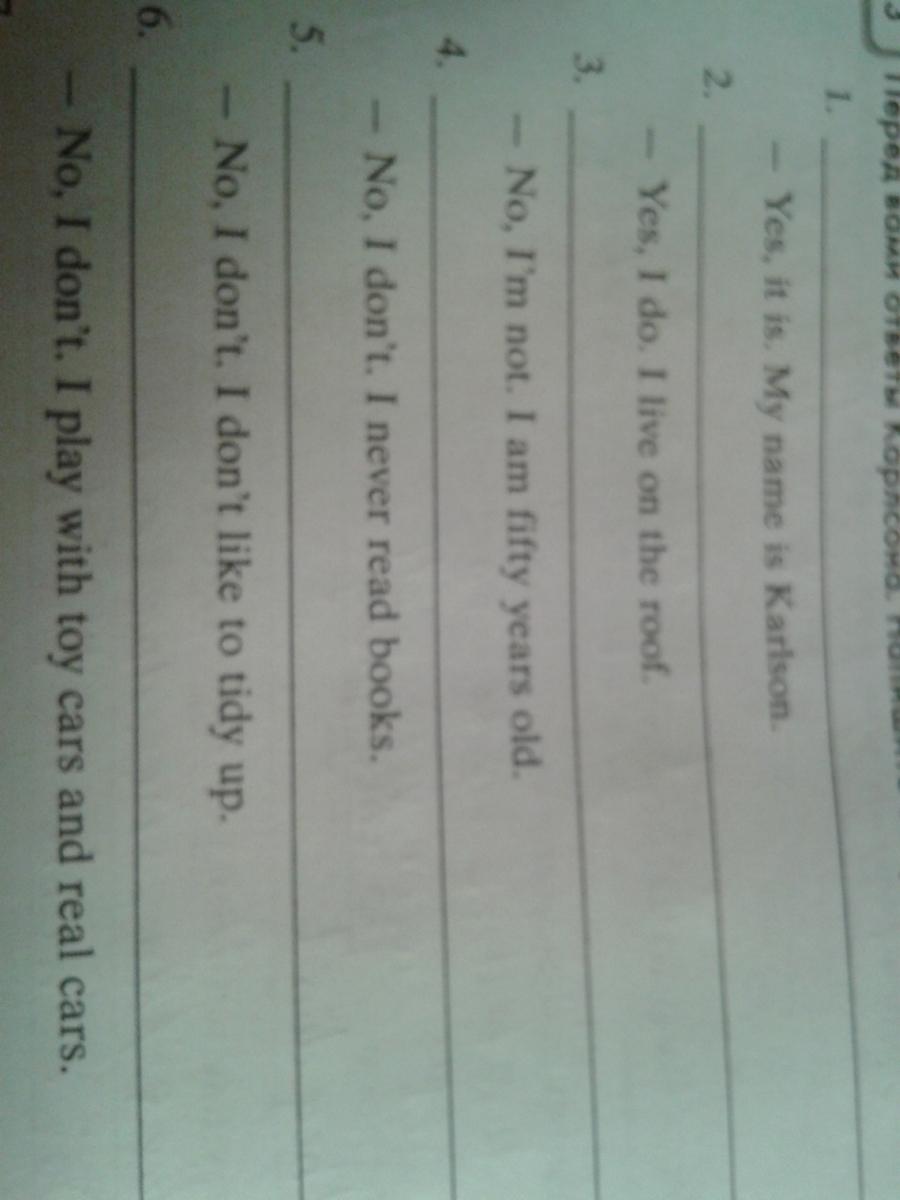 Перед вами ответы Карлосона.Напишите вопросы,которые ему задал прохожий.