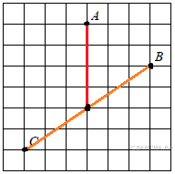 На клетчатой бумаге с размером клетки 1см x 1см отмечены точки А, В и С. Найдите расстояние от точки А до середины отрезка ВС. Ответ выразите в сантиметрах