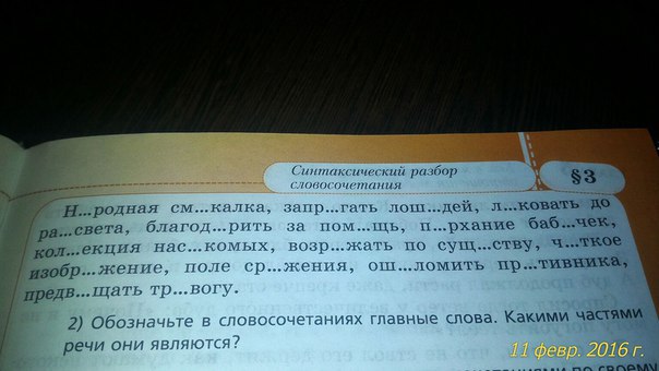 Народная смекалка(сущ), запрягать(гл) лошадей, ликовать(гл) до рассвета, благодарить(гл) за помощь, порхание(сущ) бабочек, коллекция(сущ) насекомых, возражать(гл) по существу, четкое изображение(сущ), поле(сущ) сражения, ошеломить(гл) противника, предвещать(гл) тревогу