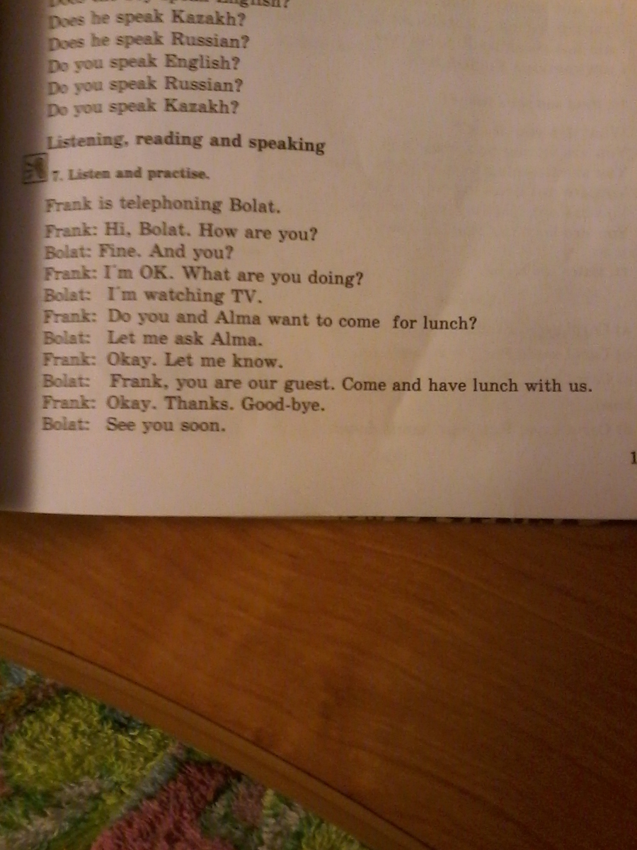 Bolat: Френк, ты наш гость. Приходи и пообедай с нами