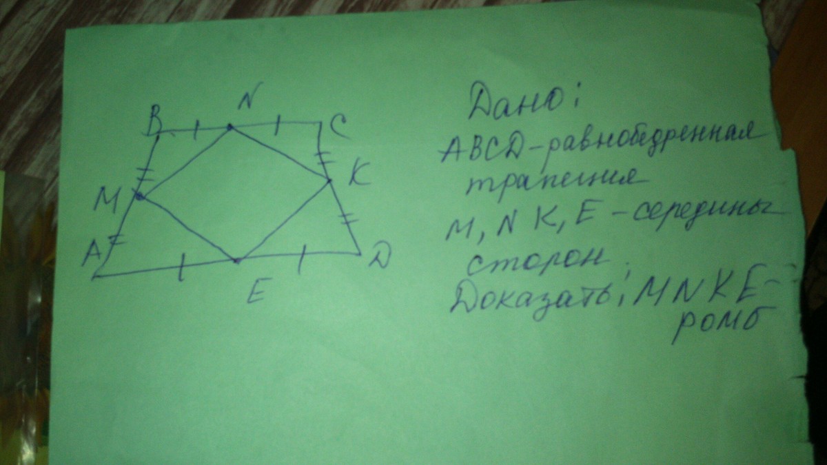 Значит, МН=НК, и МЕ=ЕК, НЕ перпендекулярно МК, отсюда МНКЕ - ромб.