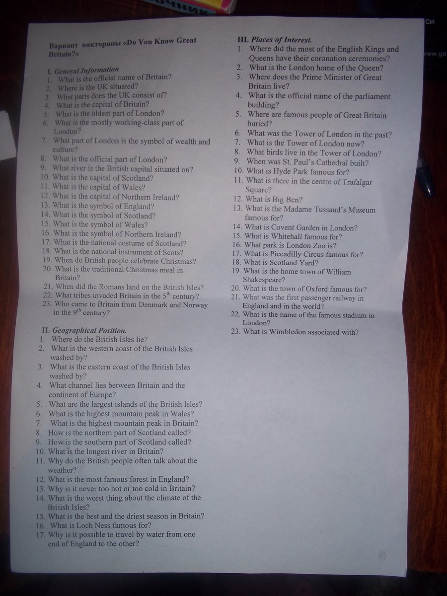 1. The official name of Britain is the United Kingdom of Great Britain and Northern Ireland.