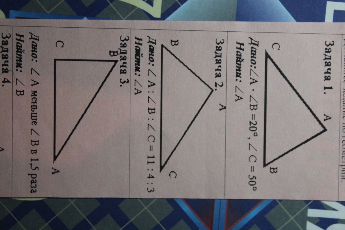 ∠С = 50°, ∠А - ∠В = 20° ⇒