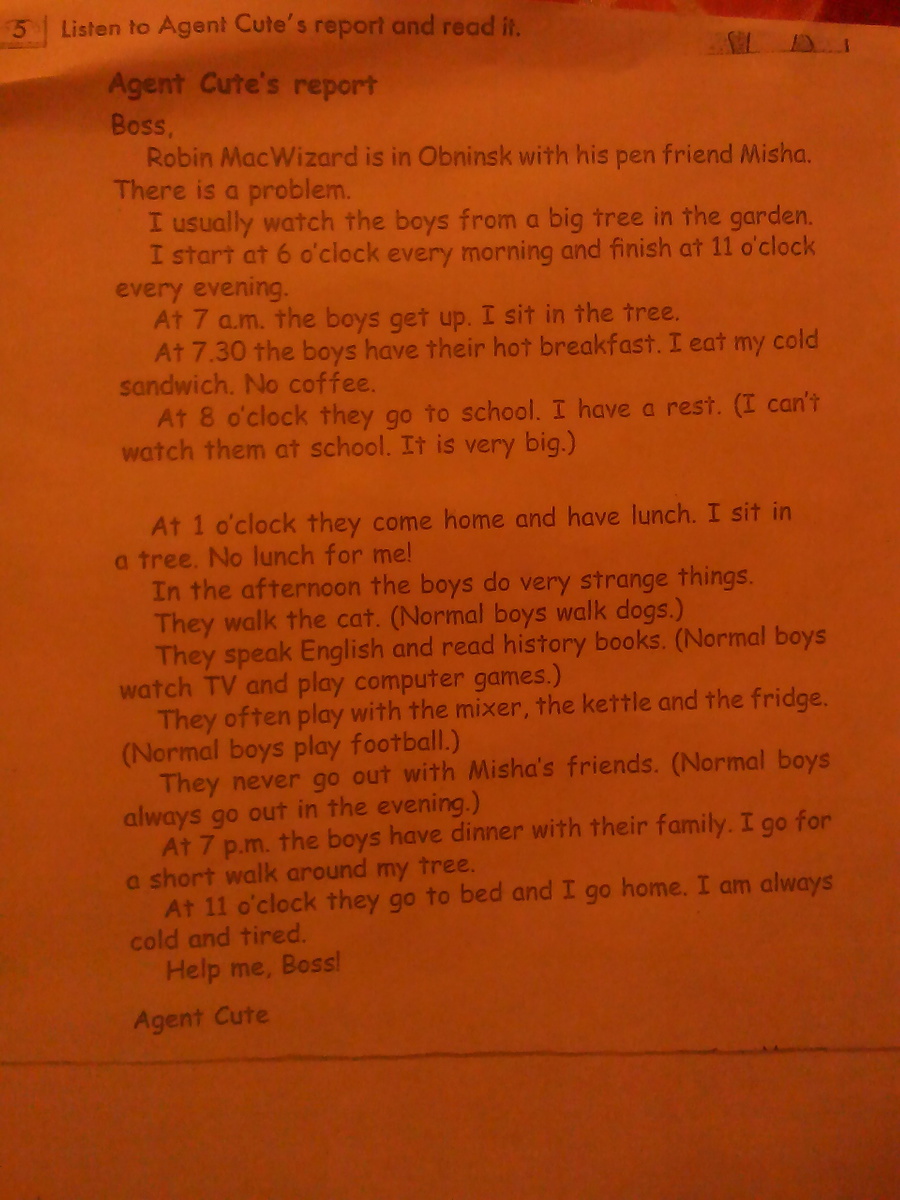 В 7 часов утра мальчики встают. Я сижу в дереве.