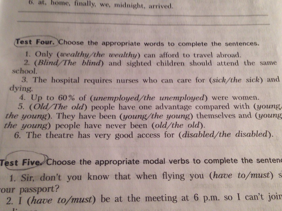 5). The old people have one advantage compared with the young. They have been young themselves and the young people have never been old.