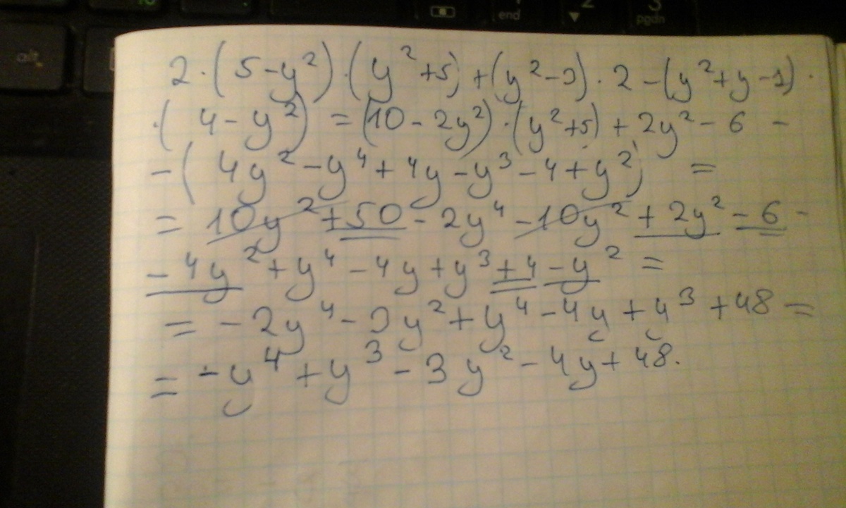 2(5-у^2)(у^2+5)+(у^2-3)2 -(у^2+у-1)(4-у^2) преобразуйте алгеобраическое выражение в многочлен стандартного вида