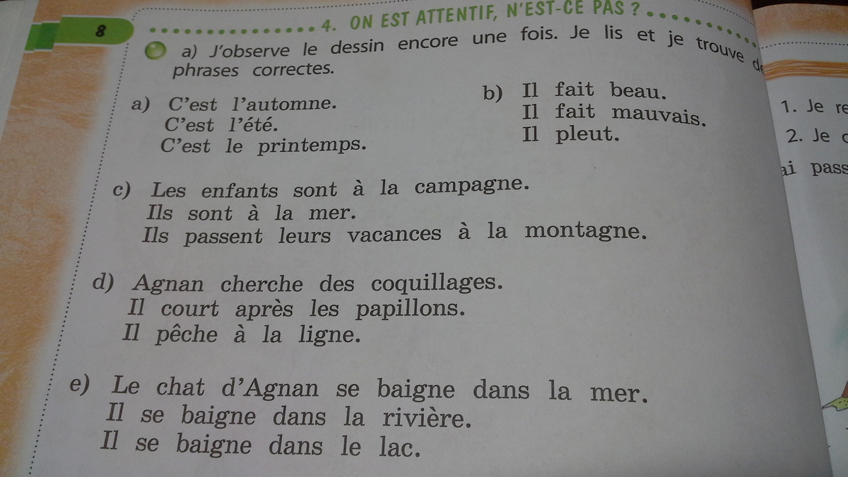 На последний не могу ответить, не вижу кто и где купается, не хватает рисунка, но наверное тот ответ, что à la mer