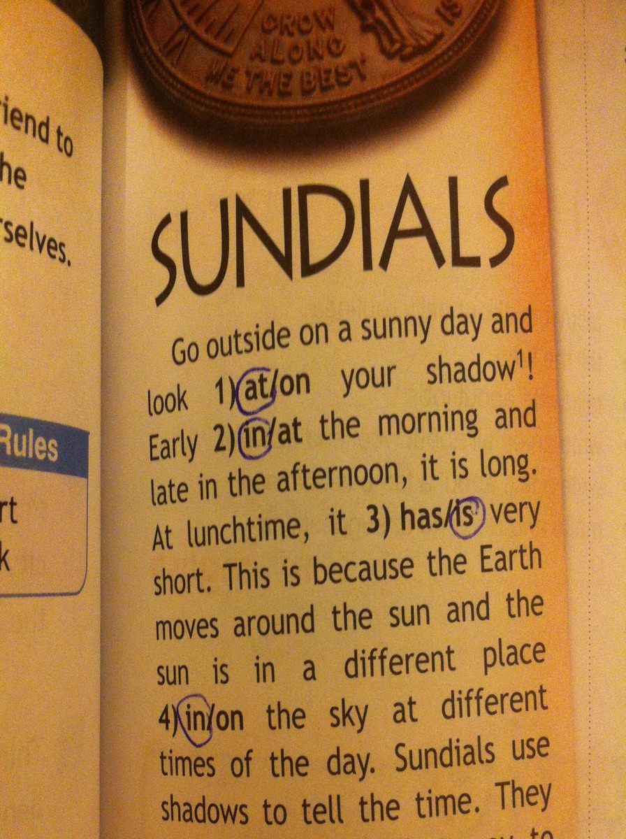 Выйди на улицу в солнечный день и посмотри на свою тень! Рано утром и поздно вечером она длинная. В обед - очень короткая. Это из-за того, что Земля вращается вокруг Солнца, из-за чего мы видим солнце в небе в разных местах в разное время суток. Солнечные часы с помощью теней показываю время.