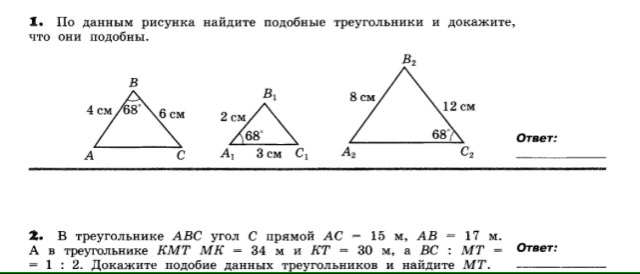 1 и 2, 2 и 3 ( по двум пропорц. сторонам и углу)