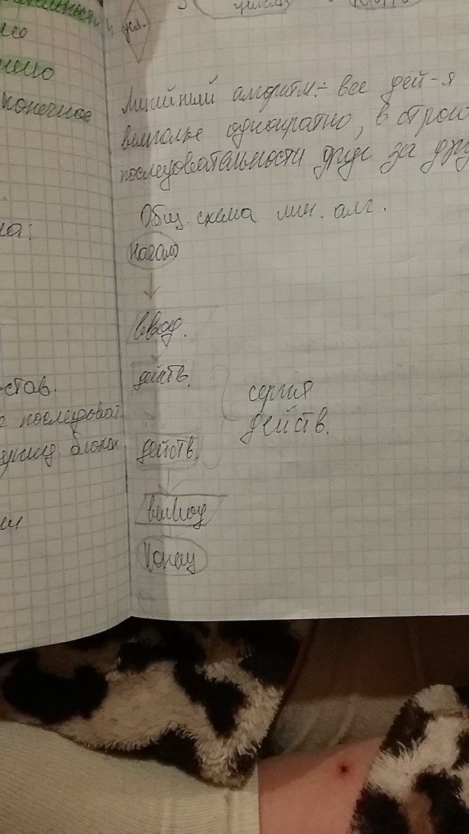 Составте схему линейного алгоритма.Я пошел в магазин,чтобы купить молоко,хлеб,макароны,масло.Ребятаа помогите пожалуйстааа,срочно надооо.Нужна схема как на картинке.Большое спасибо!!!