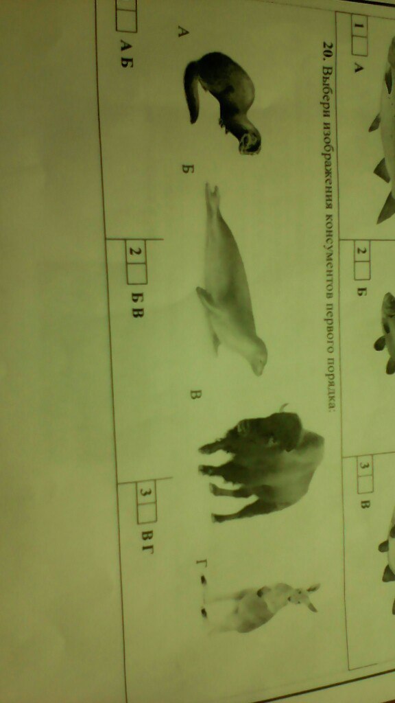 Если первого порядка, значит питаются продуцентами. Растениями то есть. Подходит пара зубр и кенгуру (или заяц? картинка плохая). Словом. вариант 3.