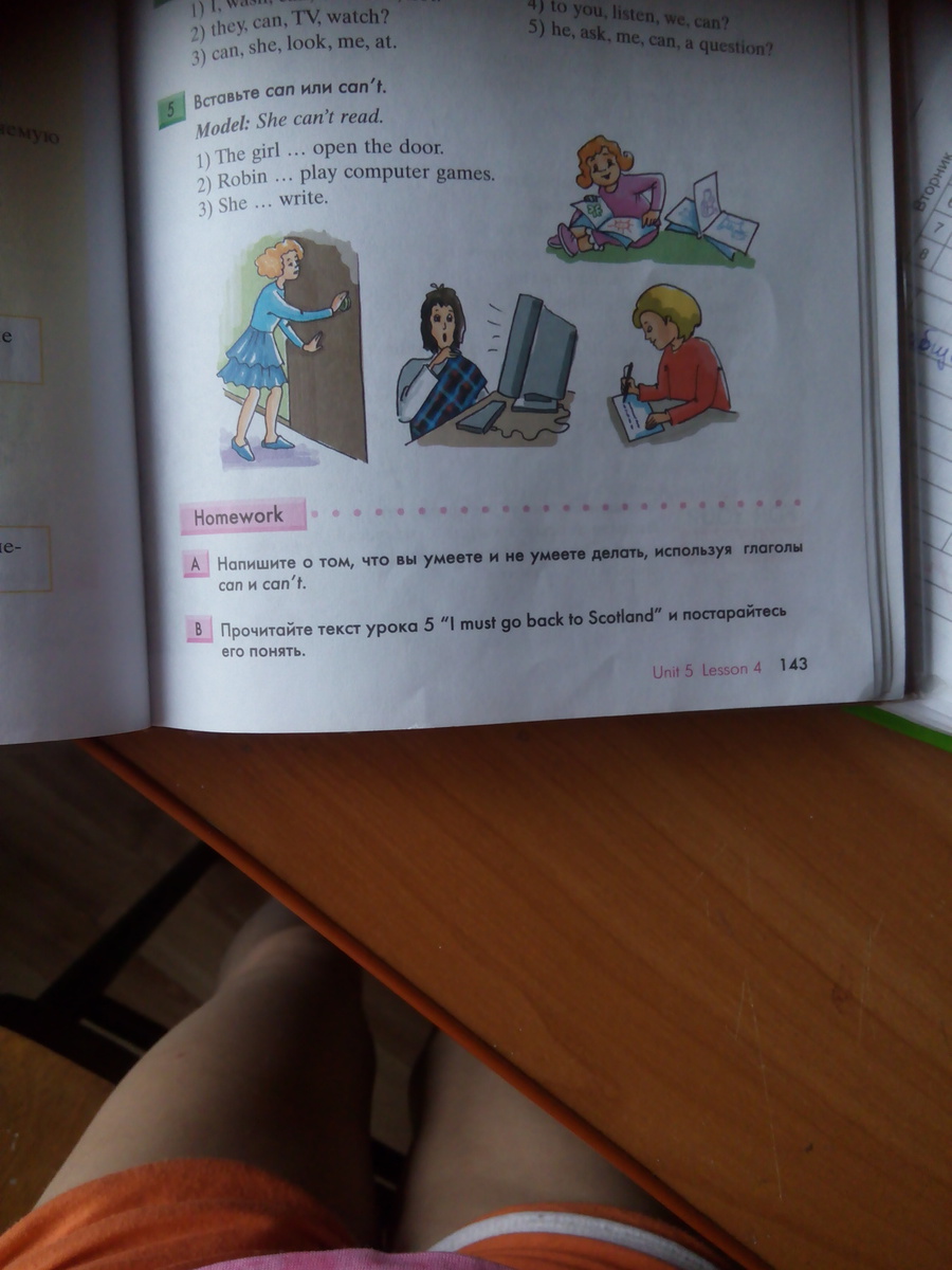 1) can't open the door 2)Robin can play computer games. 3) She can write. A. I can swim,sing.I can play tennis. I can't play football. I can't song well.