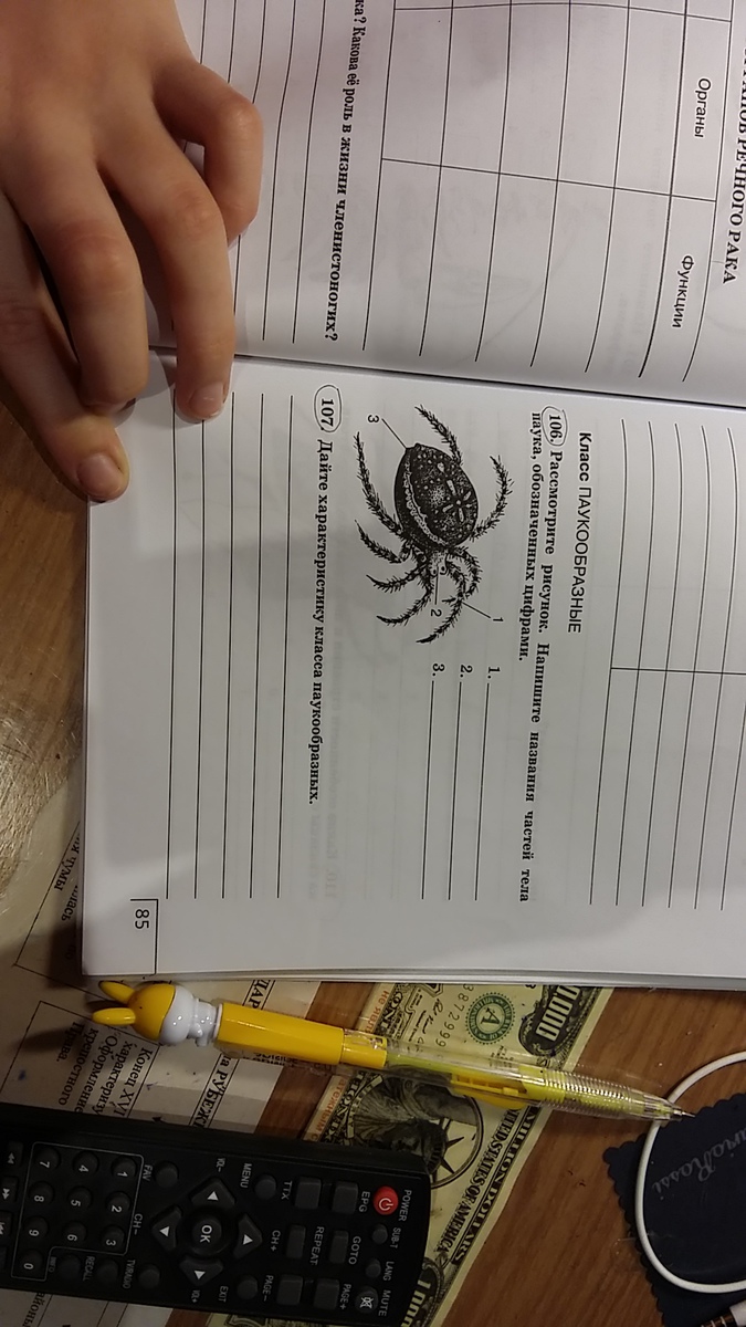 1- ходильные ног. 2- ногощупльца. 3-паутинные бородавки