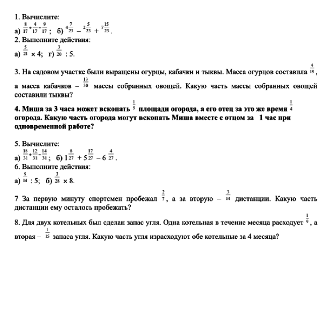 1) 1/5 : 3 = 1/15 в час копает Миша