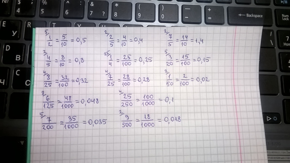 Приведите дроби к одному из знаминателей 10,100,1000 и т.д,и запишите соответствующие десятичные дроби :