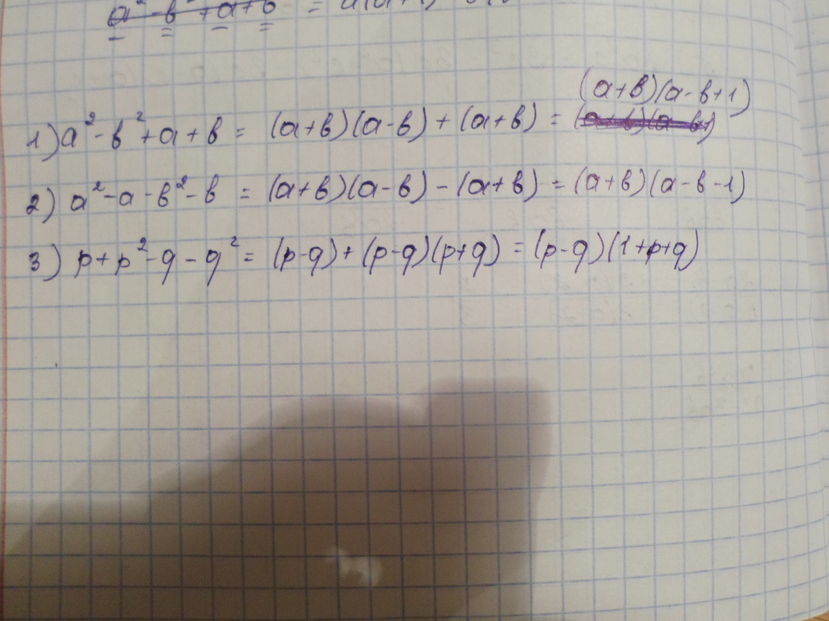 3)p + p(во второй степени) - q - q(во второй степени) =