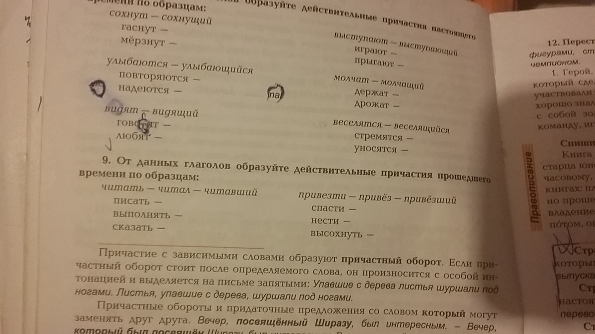 писал - писавший, выполнял - выполнявший, сказал - сказавший