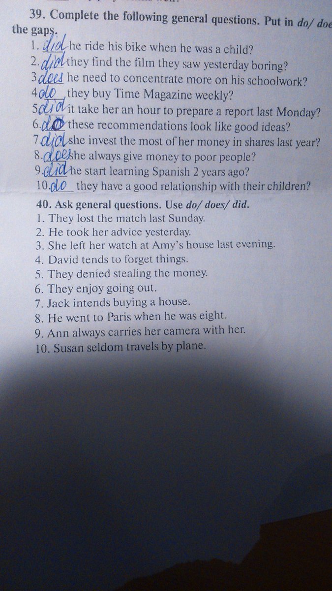 do иcпользуется с I и you; did --> we, they; does --> he, she, it