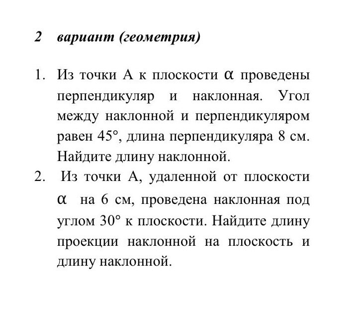 2) Длина наклонной 6/sin(30)=12. Длина проекции наклонной равна 12*cos(30)=6*sqrt(3)