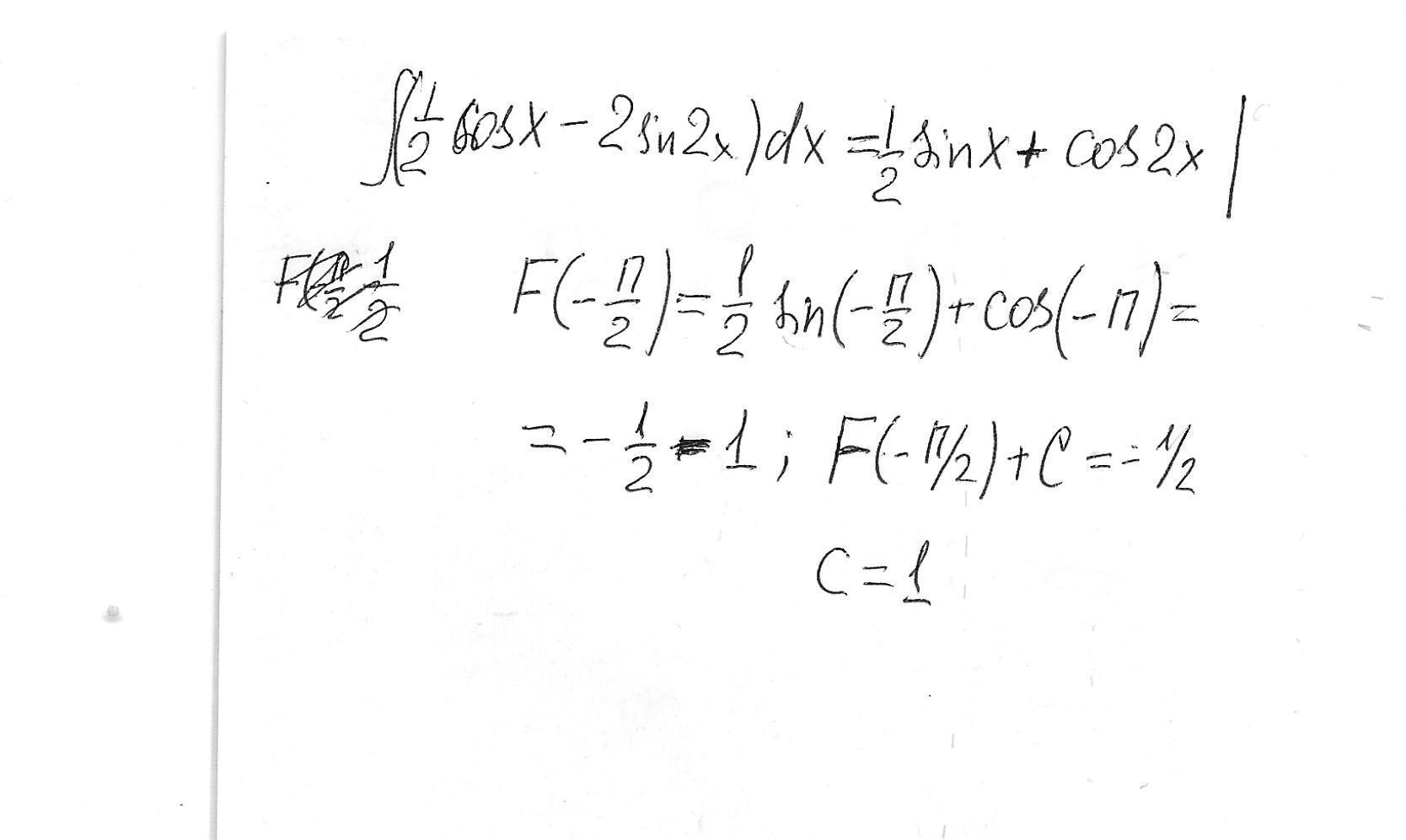 Для данной функции y=1/2 (cos x) - 2 sin2x найдите ту первообразную, график которой проходит через заданную точку (-pi/2;-1/2)