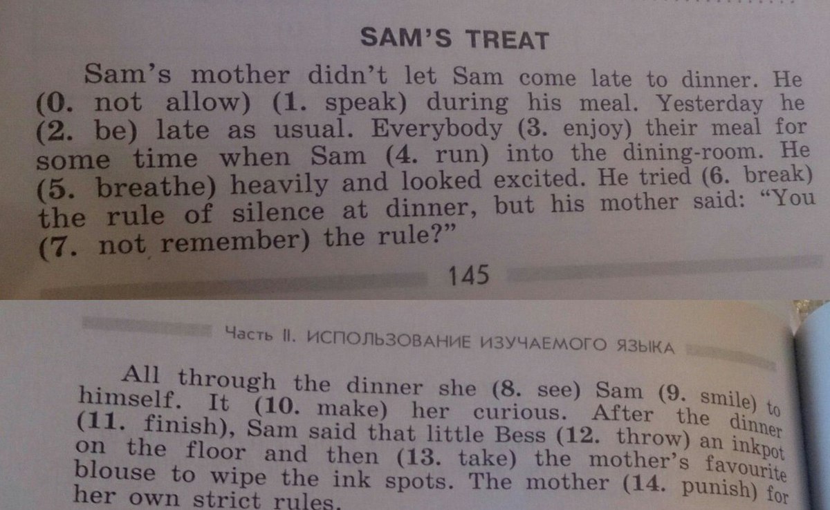 0 is 1 not allow to speak 2 was 3 enjoyed 4 ran 5 breathed 6 to break 7 did not 8saw 9smiled 10 made 11 finished 12 threw 13 took 14 punished