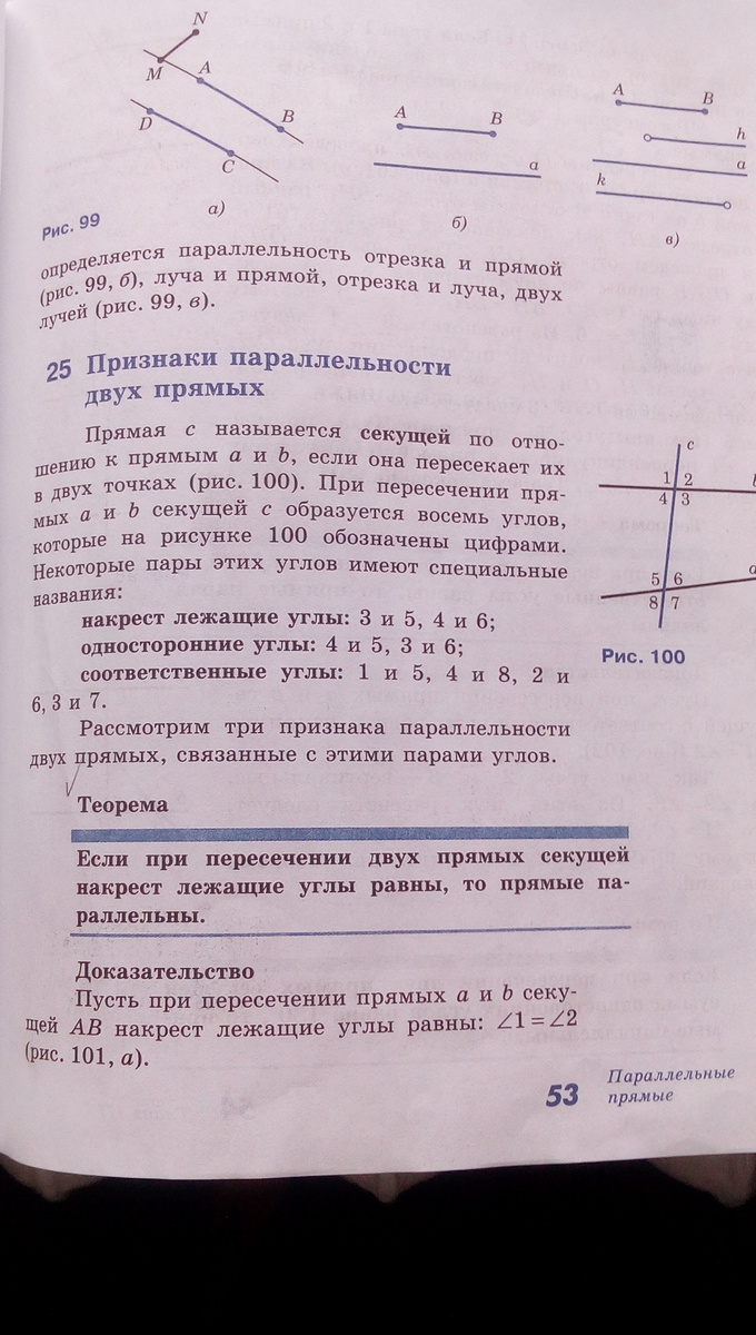 3. Если при пересечении двух прямых секущей накрест лежащие углы равны, то прямые параллельны.