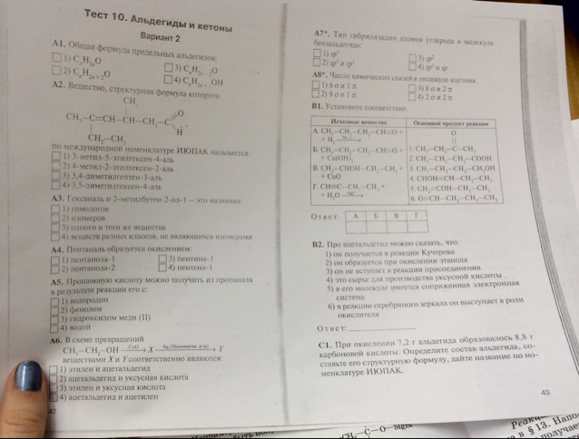 А1.-1) ; А2.-1) ; А3.-4) ; А4.-1) ; А5.-3) ; А6.-2) ; А7.-3) ; А8-2) ; В1. А: 3, Б: 2, В: 1, Г: 1. В2.-1),2),4).