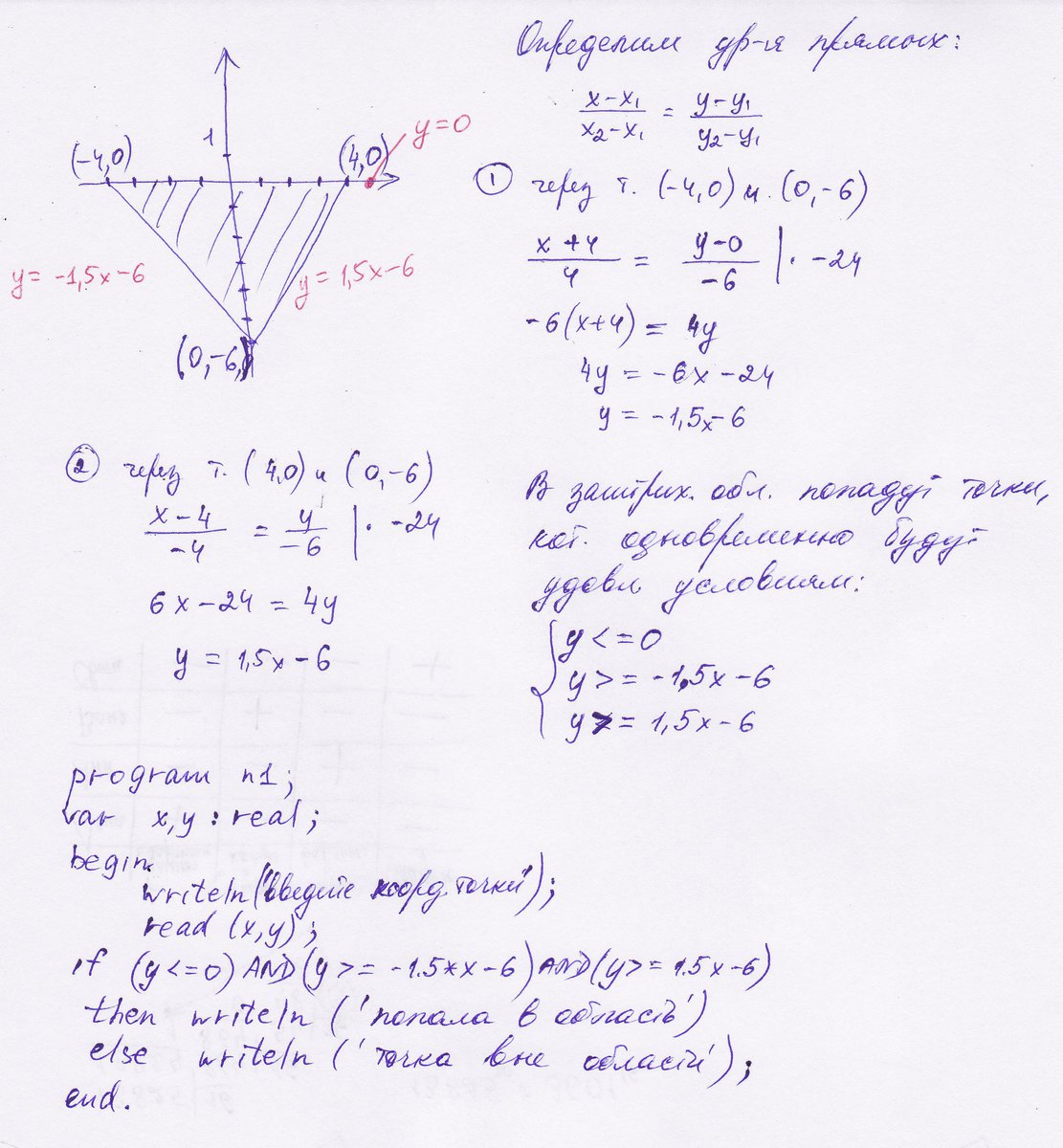 Составить программу, содержащую ветвления и определяющую, принадлежит ли точка с координатами (x;y) заштрихованной области