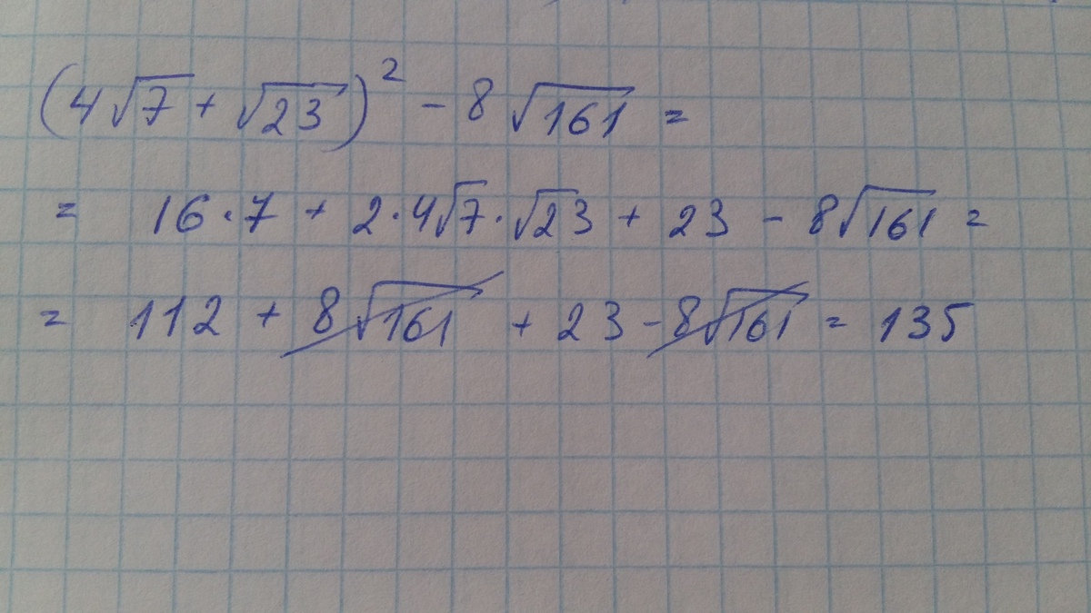 раскрываем скобки по св-вам сокращенного умножения, дальше корни сокращаются и ответ готов