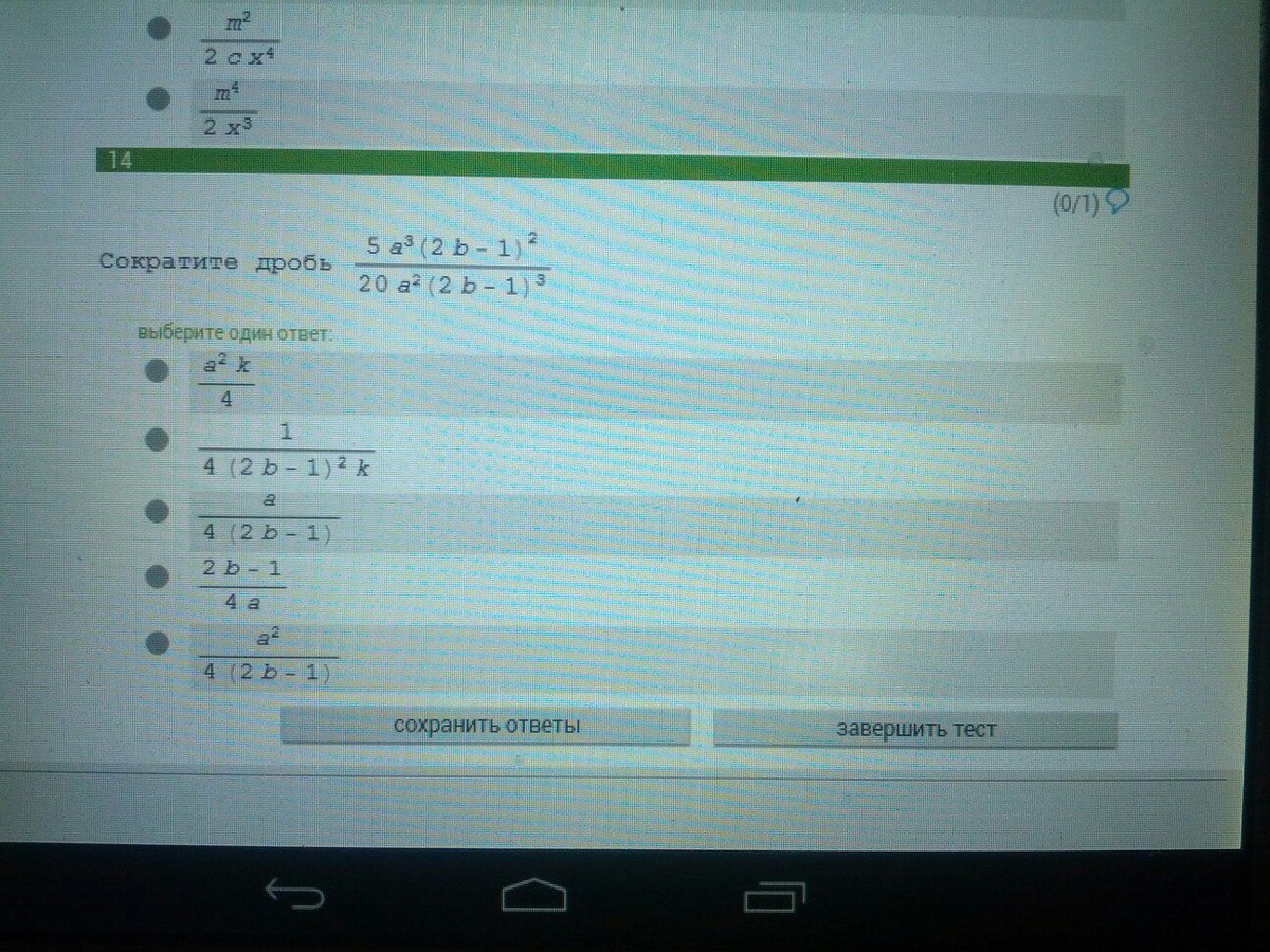 5a^{3}(2b - 1)^{2} /20a^{2} (2b - 1)^{3} = a/8b - 4
