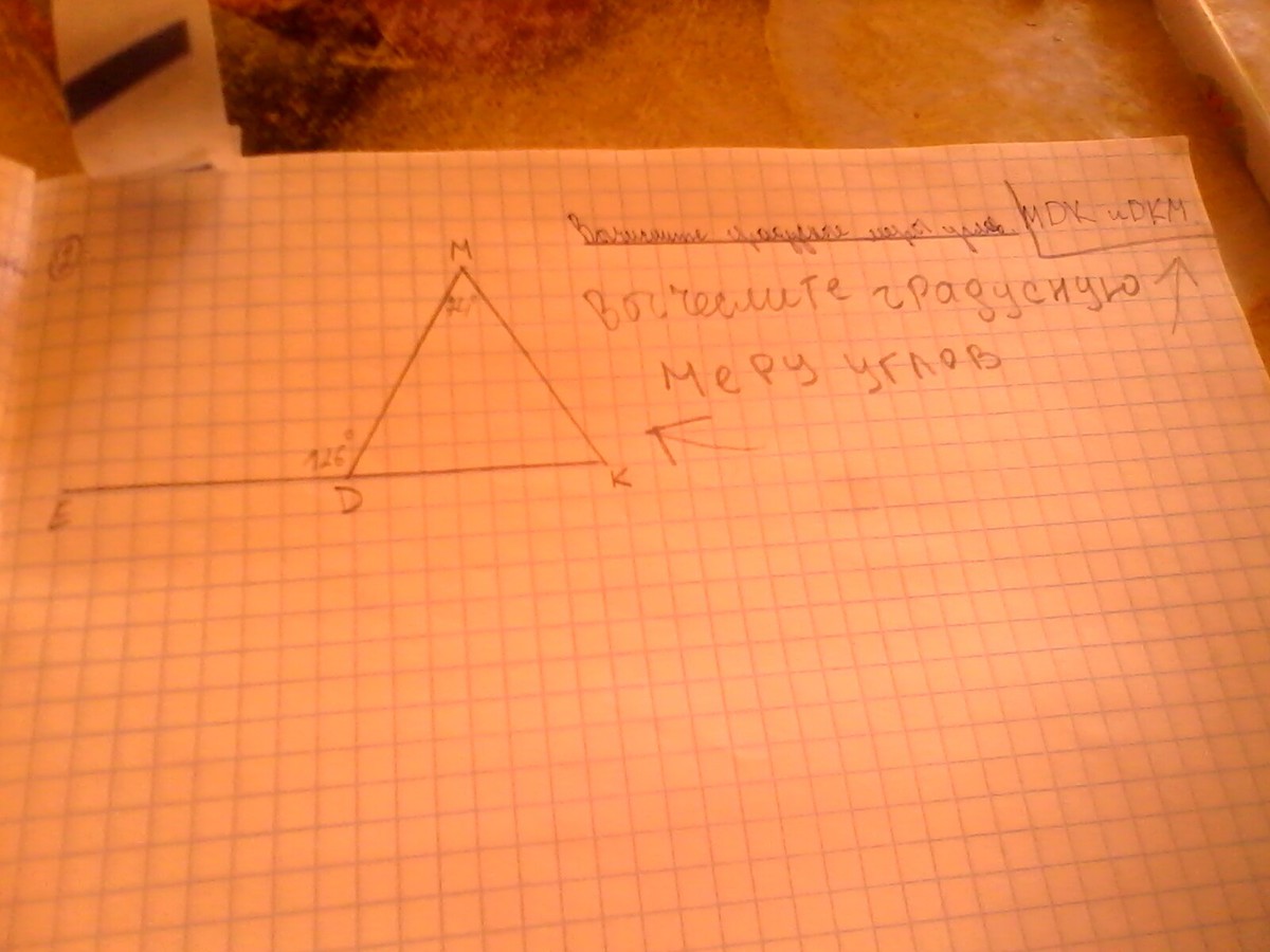 ∠ЕDM смежен с ∠MDK. Их сумма тогда равна 180°(по св-ву смежных углов). То есть ∠MDK=180°-126°=54°