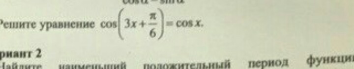 Решите одно уравнение. cos (3x+π/6)=cos x.
