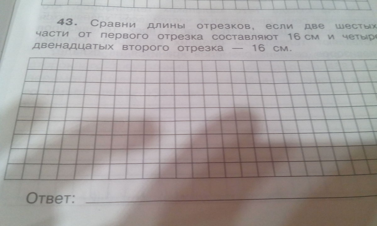 16 / 4 * 12 = 48 см длина 2 отрезка