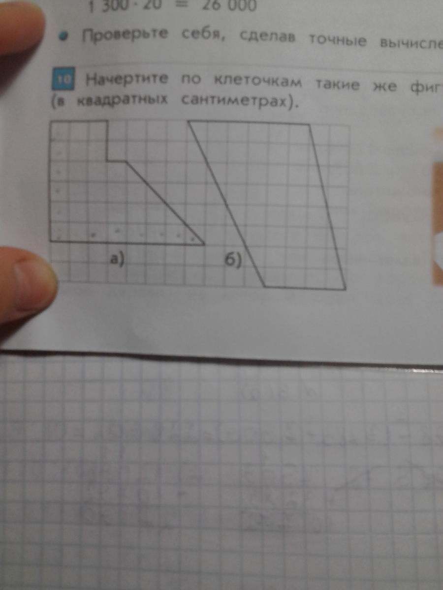 начертите по клеточкам такие же фигуры и найдите площадь каждой ( в квадратных сантиметрах)