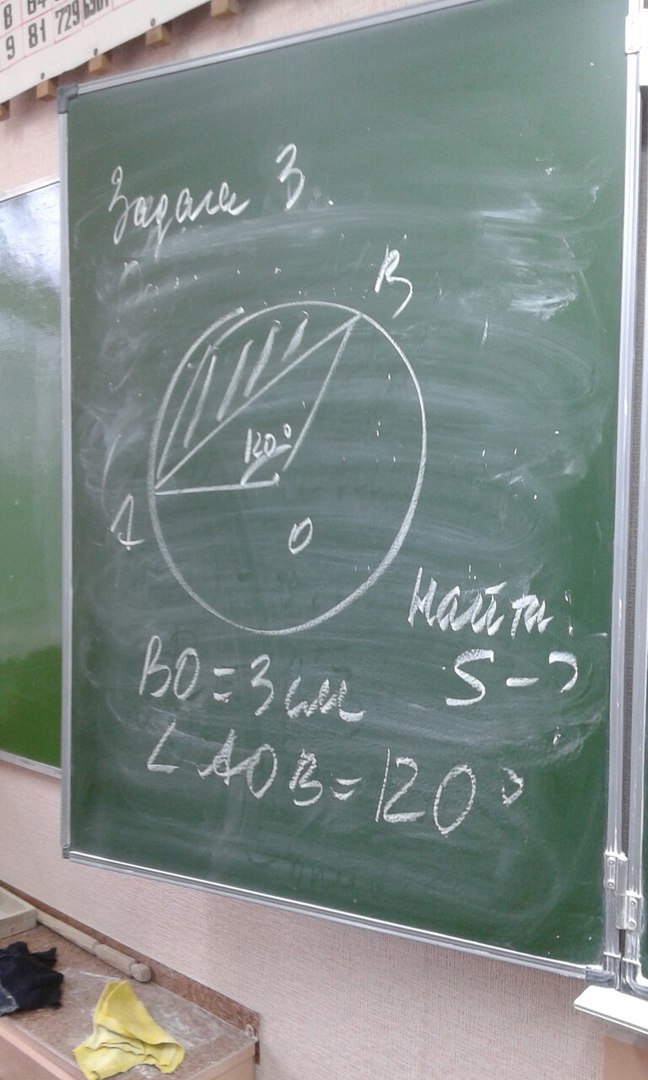 Искомая площадь: S=Sсект-S(АОВ)=9.42-3.9=5.52 см.кв.