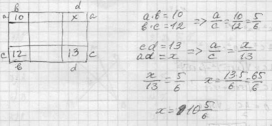 Прямоугольник разбит на 9 меньших прямоугольников. Периметры трёх из