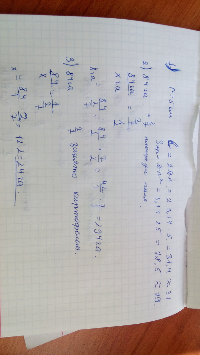 3. Площадь поля 84га из них ( 2 числитель 7 знаменатель) занято картофелем.Определи площадь занятую картофелем.