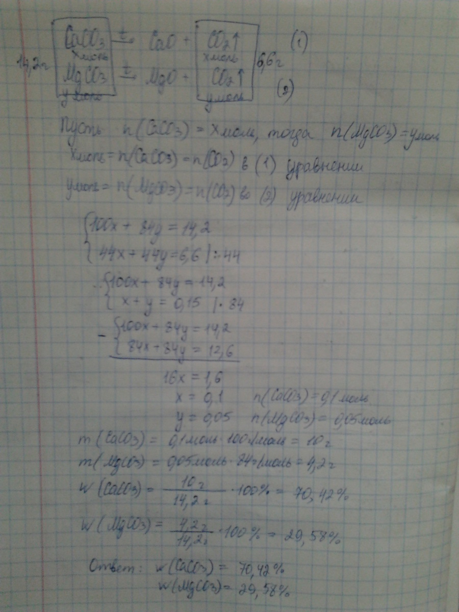 При разложении 14,2 г смеси карбонатов кальция и магния выделилось