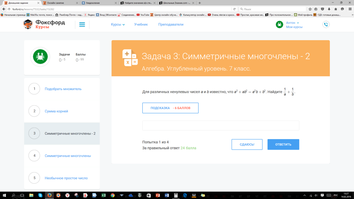 1/a + 1/b = 1/a + (a - 1)/a = (1 + a - 1)/a = a/a = 1
