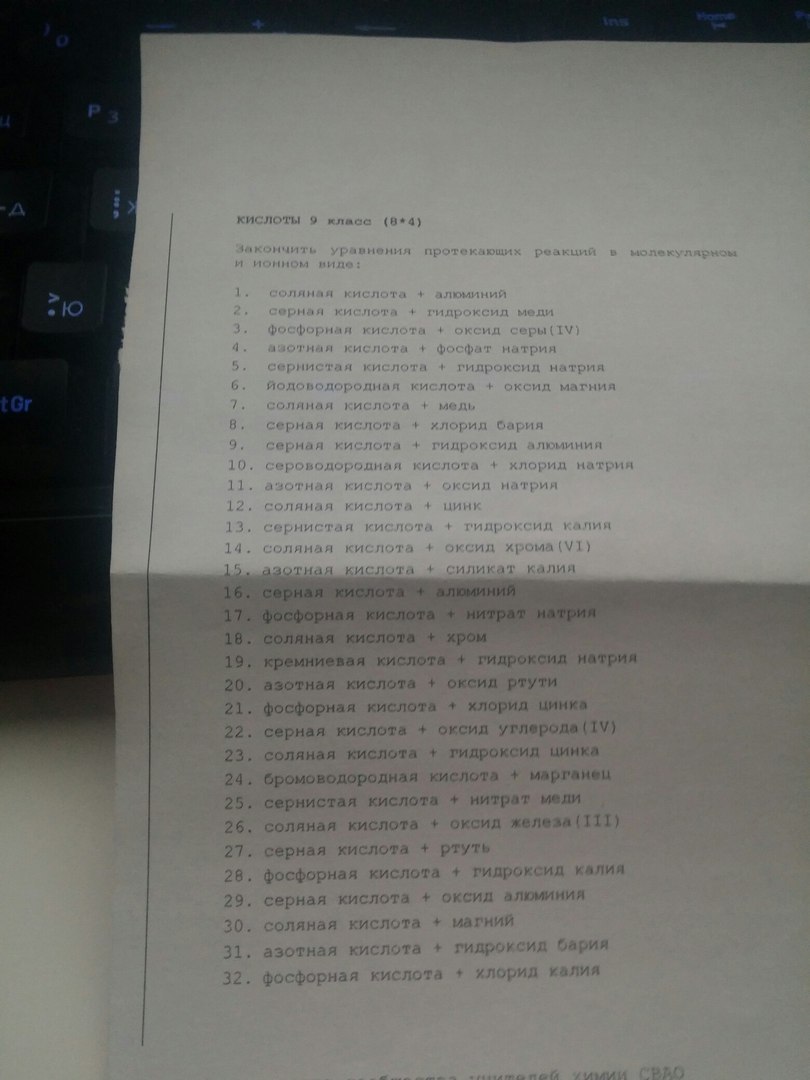 7)2HCl+Cu=CuCl2+H2