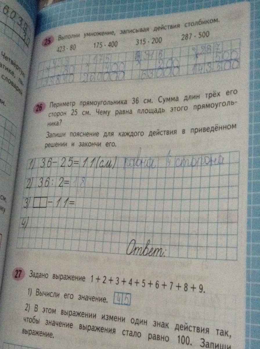 ответ: S=77 см( в квадрате) Задание #27 100= 1+2+3+4+5+6+7+8*9