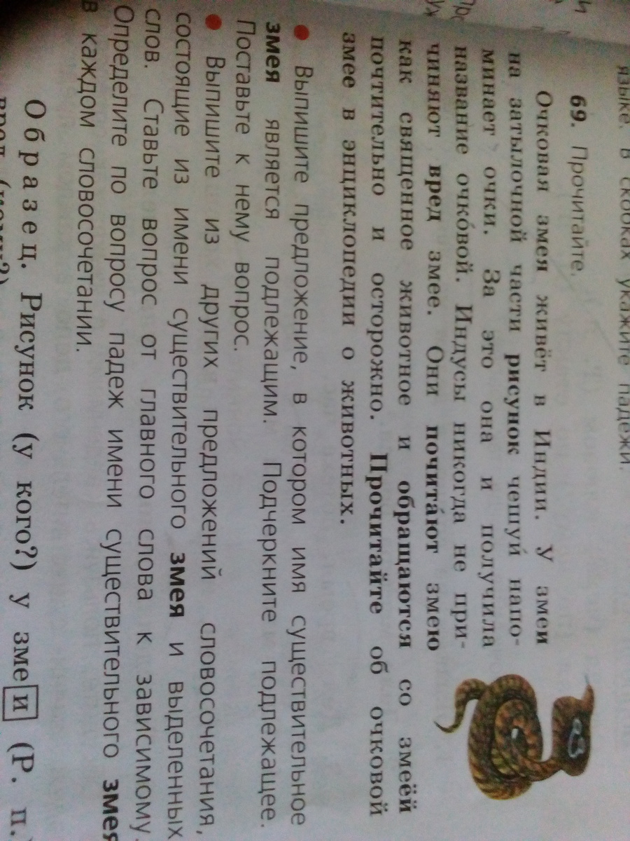 Очковая змея(подлежащие)(что делает?) живет в Индии.